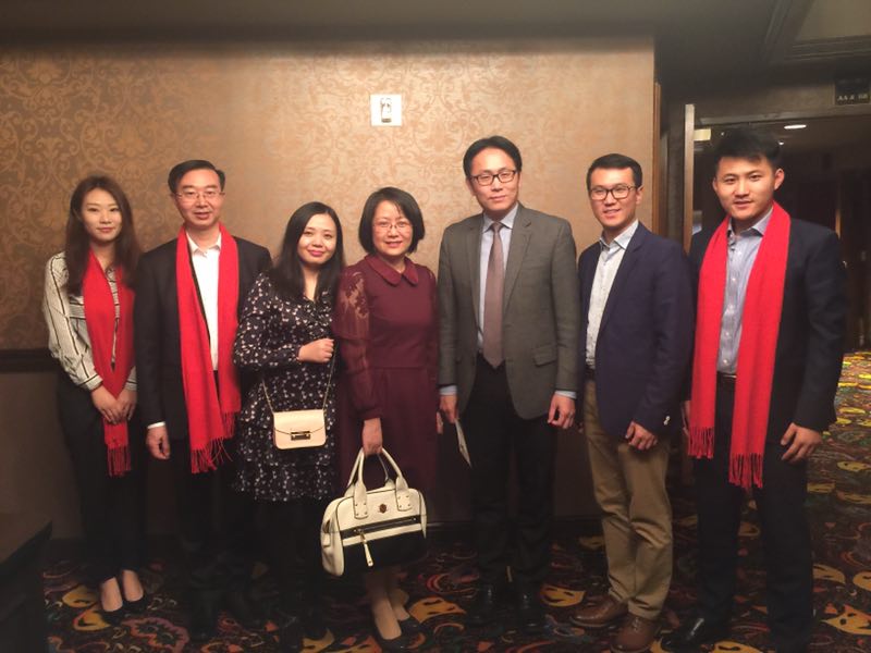 (左二愛濤集團(tuán)董事長(zhǎng)張發(fā)松,左三內(nèi)華達(dá)州華人協(xié)會(huì)副會(huì)長(zhǎng)王若梅,左四文化廳辦公室副主任曹蕾,右三文化部外聯(lián)局美大處副處長(zhǎng)金梁,右二文化廳對(duì)外文化交流處主任科員俞驍窈)