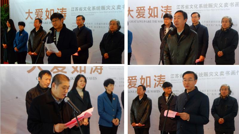 《大愛如濤——江蘇省文化系統(tǒng)賑災(zāi)義賣書畫作品展》被譽為是江蘇省文化工作者、文化企業(yè)共同譜寫的一曲擔(dān)當奉獻的正氣歌。此次作品展是繼江蘇省美術(shù)館、鹽城市圖書館展覽之后的第三站。