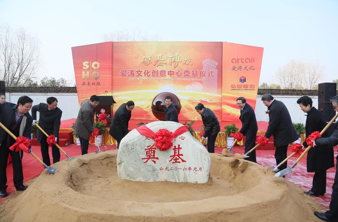 愛濤文化創(chuàng)意中心是江蘇省蘇豪控股集團(tuán)、愛濤文化集團(tuán)旗下的文化重點工程。奠基儀式由江蘇省蘇豪控股集團(tuán)有限公司、愛濤文化集團(tuán)有限公司主辦,由江蘇弘業(yè)股份有限公司、江蘇愛濤文化產(chǎn)業(yè)有限公司承辦。