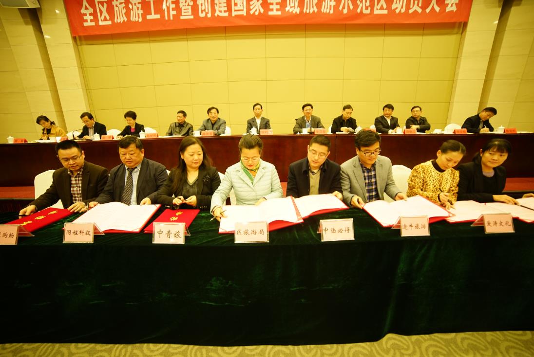 2月26日下午,江寧區(qū)全區(qū)旅游工作暨創(chuàng)建“國家全域旅游示范區(qū)”動員大會隆重召開,區(qū)四套班子主要領(lǐng)導(dǎo)、省市旅游主管部門領(lǐng)導(dǎo)出席,區(qū)委、區(qū)政府各部門主要負責同志,駐區(qū)高校分管領(lǐng)導(dǎo),旅游企業(yè)負責同志等近200人參加會議。會上,江寧區(qū)旅游局與江蘇愛濤文化產(chǎn)業(yè)有限公司等單位簽署了“互聯(lián)網(wǎng)+目的地”戰(zhàn)略合作協(xié)議,多方旅游機構(gòu)將攜手共同推進江寧區(qū)的“國家全域旅游示范區(qū)”創(chuàng)建進程。