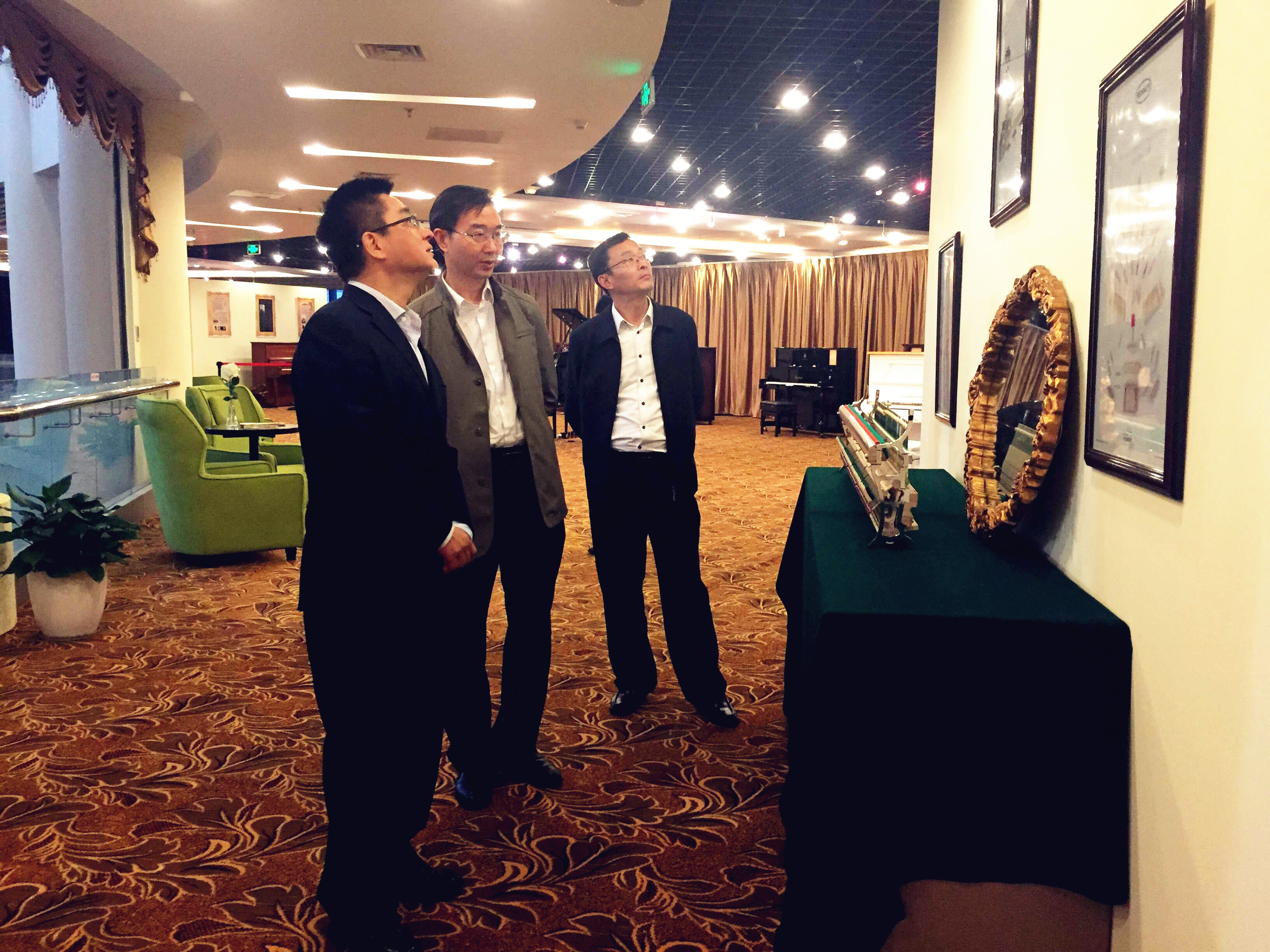 ?????? 4月13號(hào)下午,南京祿口國(guó)際機(jī)場(chǎng)副總經(jīng)理徐勇、黨委副書(shū)記趙晨華一行來(lái)愛(ài)濤文化集團(tuán)調(diào)研,文化集團(tuán)總經(jīng)理張發(fā)松,蘇豪傳媒、愛(ài)濤交響樂(lè)團(tuán)董事長(zhǎng)岳良陪同參觀(guān)了愛(ài)濤藝術(shù)中心和新成立的鋼琴中心。雙方就祿口機(jī)場(chǎng)如何提升和營(yíng)造文化氛圍進(jìn)行了探究。徐勇表示,非常高興能和愛(ài)濤文化集團(tuán)合作,此次合作結(jié)合雙方優(yōu)勢(shì),在航站樓內(nèi)構(gòu)建富有江蘇地域特色和民航行業(yè)特點(diǎn)的文化氛圍,使南京路口機(jī)場(chǎng)成為名副其實(shí)的“省門(mén)窗口”和“城市名片”。
