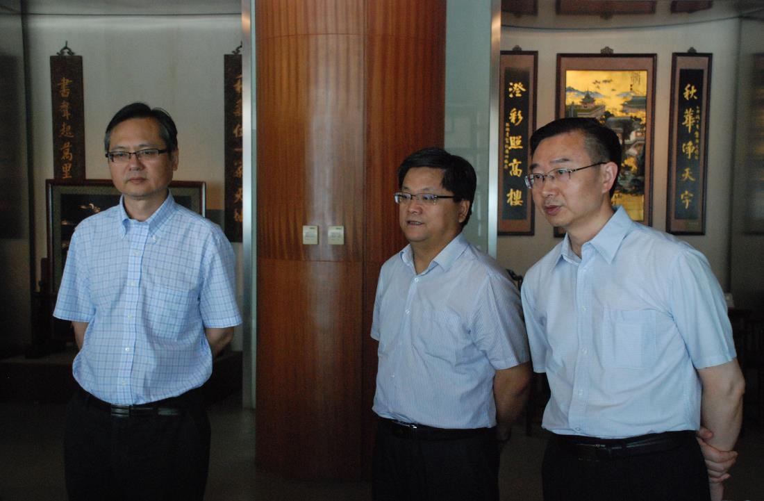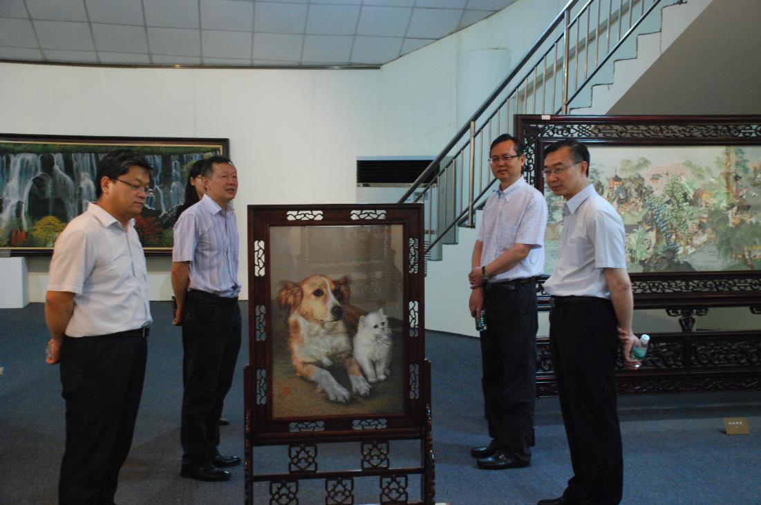 2016年6月13日上午,榮寶齋黨委書記朱濤參觀愛濤文化藝術(shù)中心,江蘇省委宣傳部王明珠處長、愛濤文化集團(tuán)董事長張發(fā)松、黨委委員黃東炎陪同參觀。