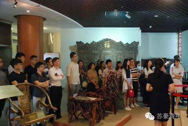 活動歷時半天,團(tuán)員青年先跟隨講解員的步伐,參觀了藝術(shù)館館藏珍寶。從刺繡絲織民俗館到紅木雕刻家具館再到玉石陶瓷漆器館、字畫館等。現(xiàn)場的年輕同事很多都是第一次看到如此眾多的珍寶,被工藝精品的藝術(shù)魅力深深折服。