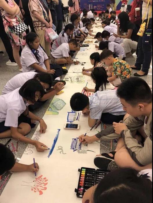 每一次“文化行走”,學(xué)生們必進(jìn)當(dāng)?shù)馗咝?,聽高校教師的專題文化講座或與高校學(xué)生一起互動。譬如帶學(xué)生們進(jìn)入泰國孔堤公學(xué),與泰國的中小學(xué)生親密互動,共同作畫。在今后的研學(xué)活動中,導(dǎo)師們還會給學(xué)生帶來“一帶一路”、“區(qū)域環(huán)境差異”等專題課程。